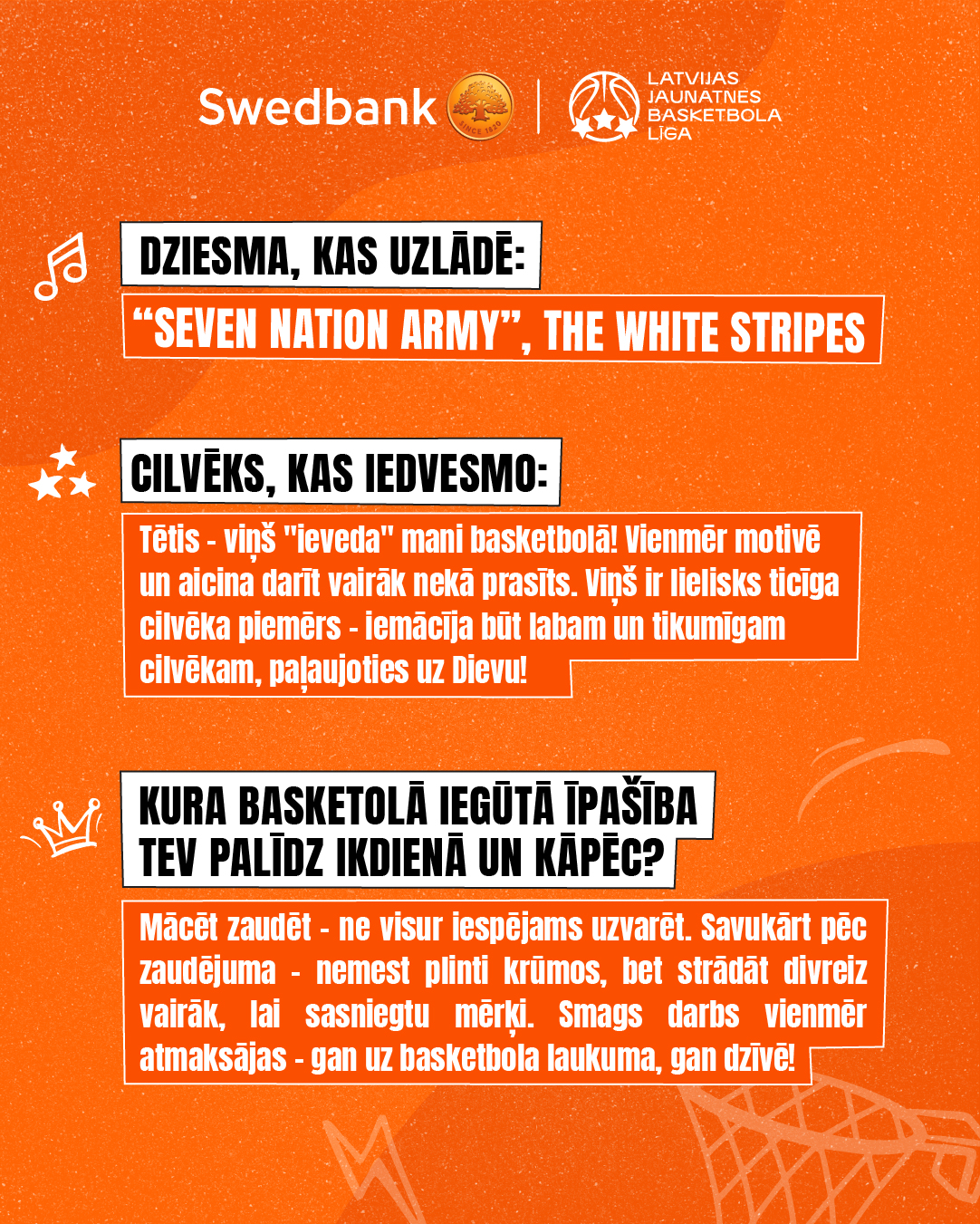 Katru mēnesi ar Swedbank un LJBL balvām tiks apbalvoti viens treneris un viens spēlētājs.