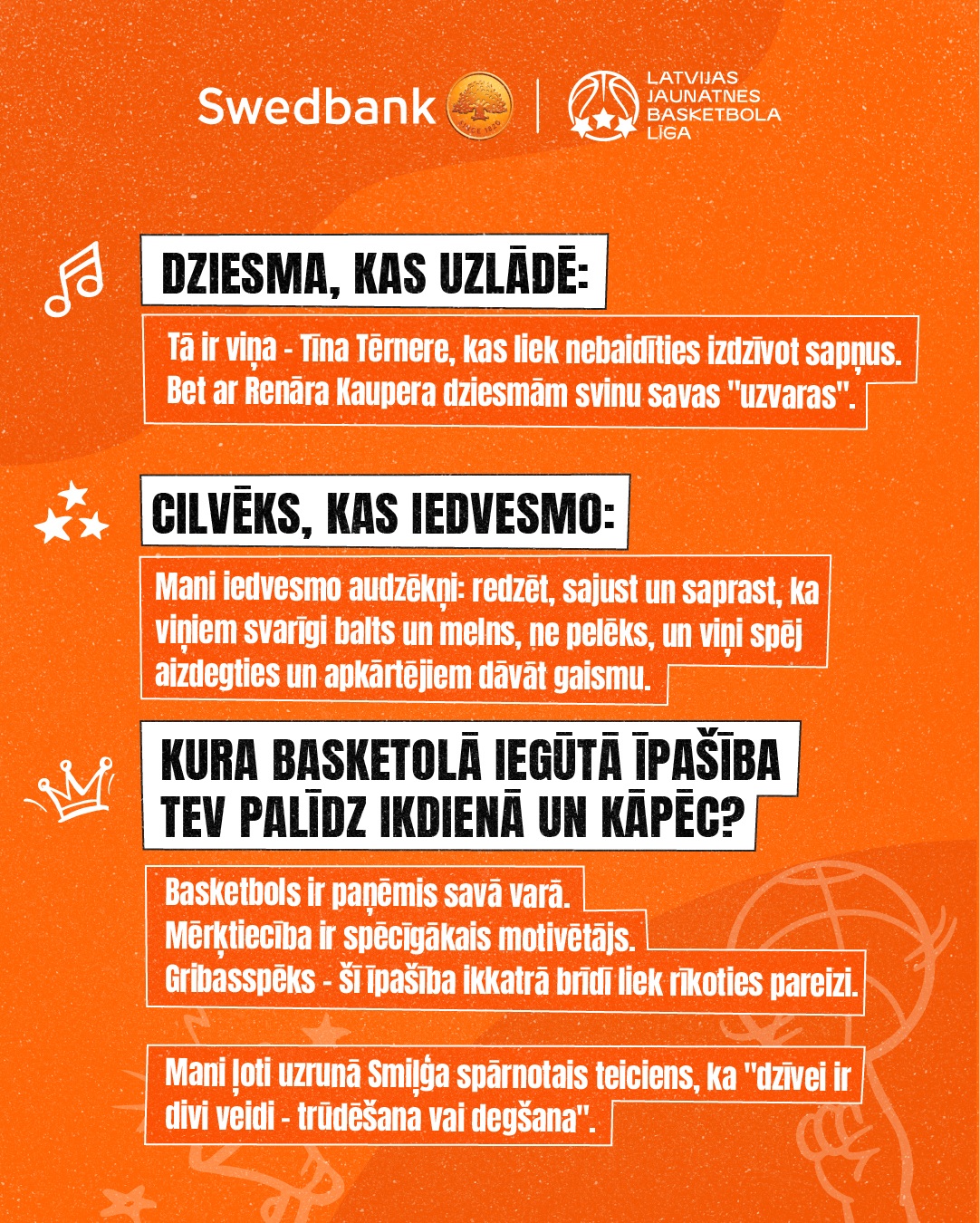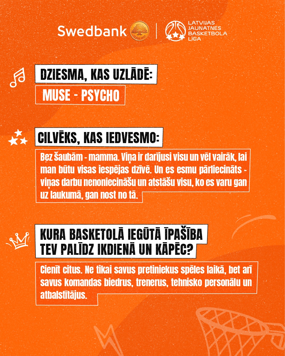 Jaunatnes basketbols nav tikai rezultāts uz tablo. Tas ir stāsts par cilvēkiem, kuri ar savu darbu, attieksmi un vērtībām katru dienu iedvesmo apkārtējos augt un kļūt labākiem.
